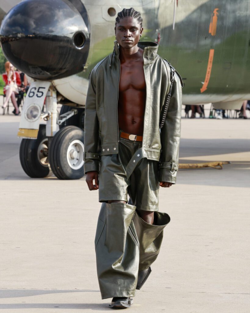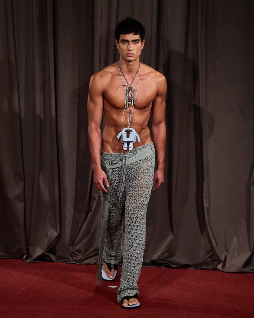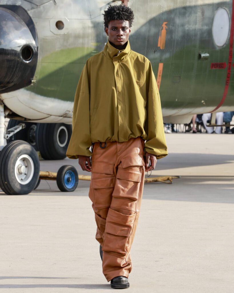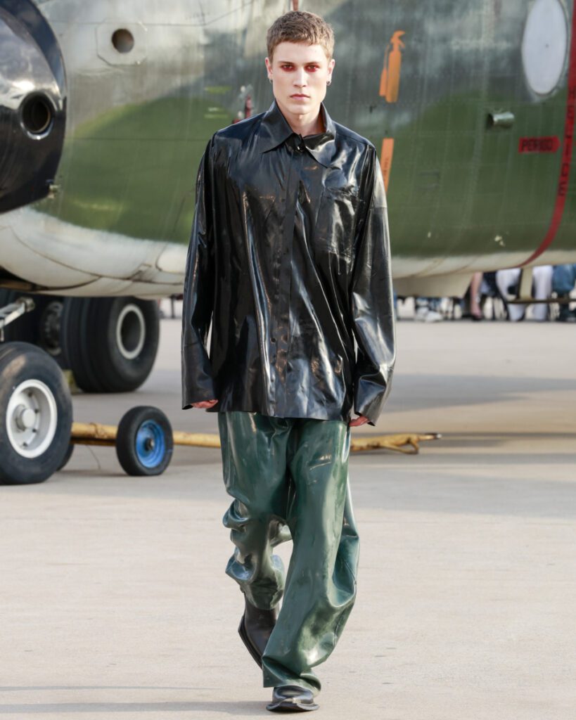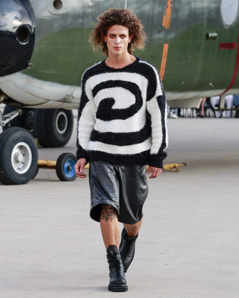 Com 50 looks, a “Helyx” mergulha no universo dos esportes radicais para traduzir adrenalina em moda. O design aerodinâmico domina a silhueta, com peças que equilibram estrutura e fluidez. Couro, emborrachados, jacquards e denim convivem com tecidos leves como o chiffon, resultando em jaquetas utilitárias, vestidos longos, macacões e calças de apelo funcional e urbano.