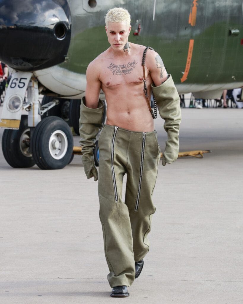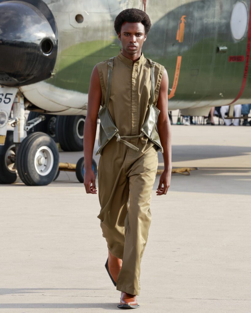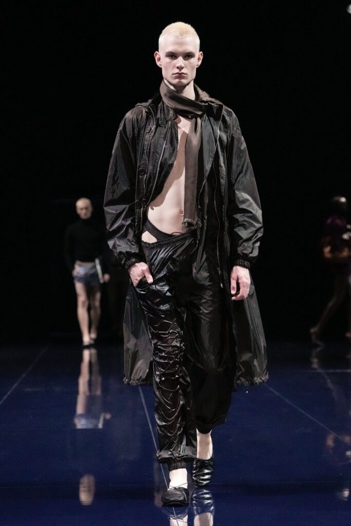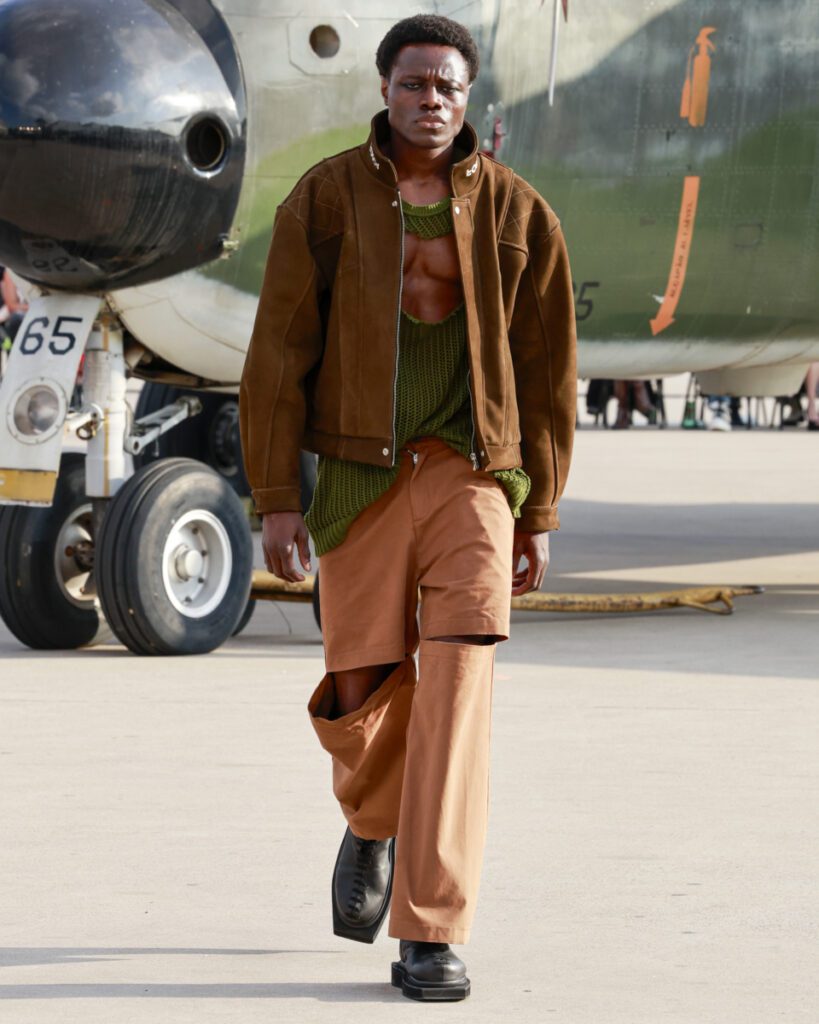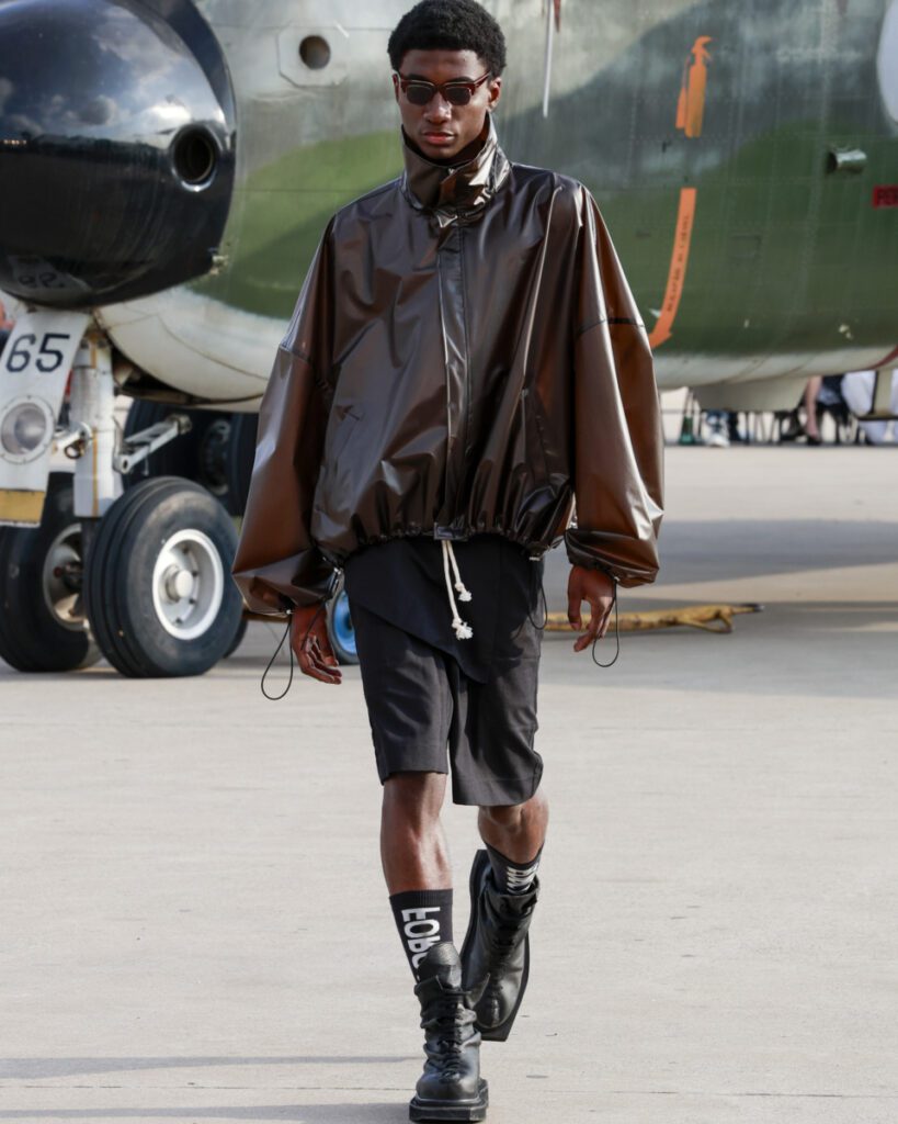 Com 50 looks, a “Helyx” mergulha no universo dos esportes radicais para traduzir adrenalina em moda. O design aerodinâmico domina a silhueta, com peças que equilibram estrutura e fluidez. Couro, emborrachados, jacquards e denim convivem com tecidos leves como o chiffon, resultando em jaquetas utilitárias, vestidos longos, macacões e calças de apelo funcional e urbano.