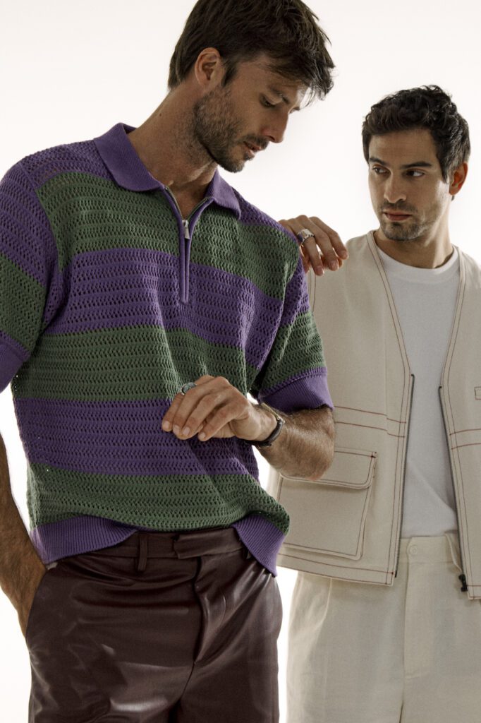 O jogo de contrastes se estende também às atitudes: ora sofisticados, ora descontraídos, os dois imprimem uma narrativa de estilo que privilegia autenticidade, leveza e uma nova visão sobre masculinidade. Entre o clássico e o despojado, nasce um homem urbano que assume a moda como extensão de sua própria liberdade.