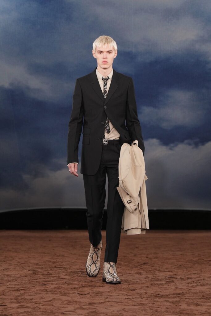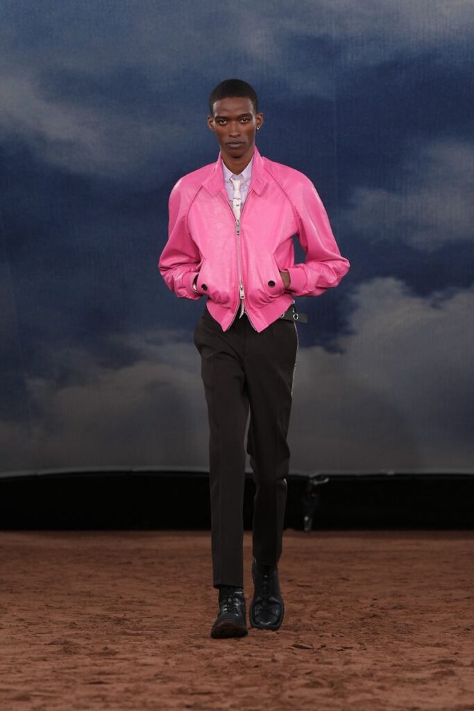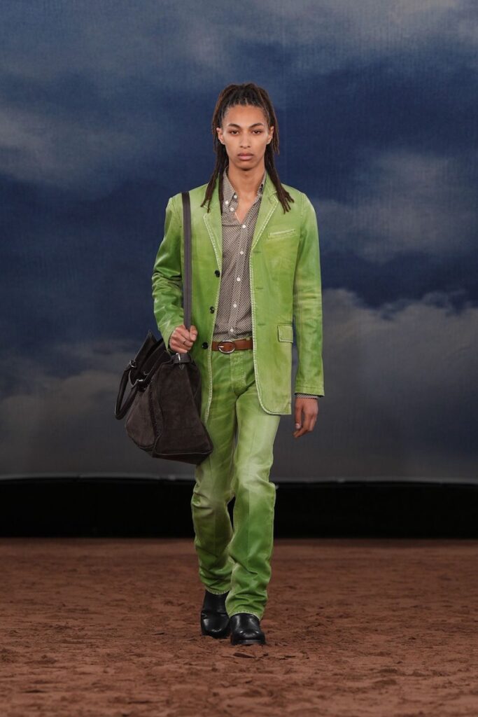 Blazers de veludo e paletós de verão convivem com shorts e sobreposições inesperadas, ressignificando a elegância sem abrir mão do frescor. Cores intensas — como o vermelho vibrante e o amarelo solar — encontram equilíbrio nos neutros suaves, construindo uma paleta que traduz confiança e ousadia em doses precisas.