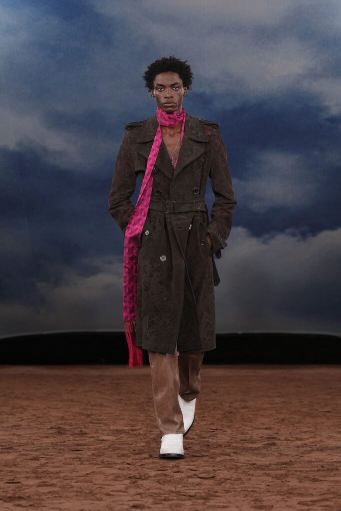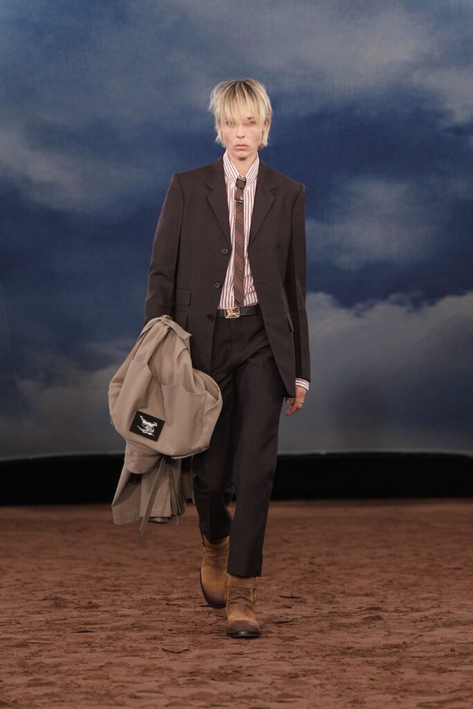Inspirado pelos meses mais frios e por seu tempo passado no campo, Beckham buscou refletir esse ambiente na coleção, onde sobreposições se tornam naturais e os tecidos ganham ainda mais destaque. “Desde o início do processo criativo, quis desenvolver uma coleção que transmitisse a sensação de estar em casa, no campo, durante o inverno”, afirmou. Esse sentimento de aconchego aparece em malhas com textura, calças de corte mais solto e peças de outerwear que funcionam bem tanto em ambientes rurais quanto urbanos.
