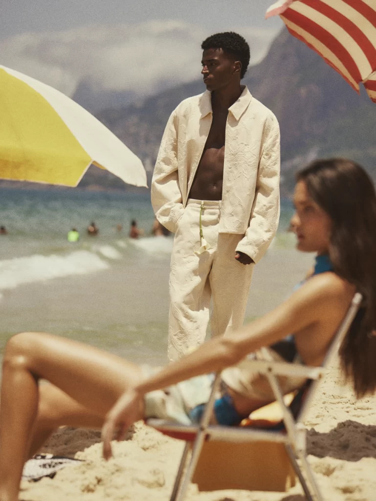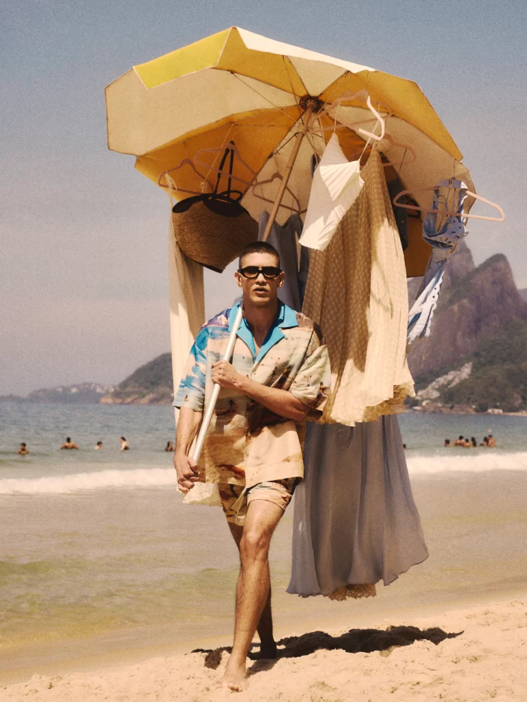A primeira campanha de moda masculina foi fotografada no Praia do Arpoador, no Rio de Janeiro, e reflete inspirações de clima quente e da costa brasileira. A coleção combina alfaiataria leve, bordados artísticos e roupas de praia de verão, pensadas tanto para momentos relaxados à beira-mar quanto para o estilo urbano.