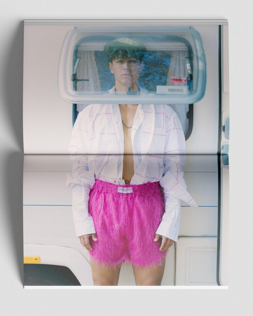 In an unexpected blend of the everyday and the eccentric, this editorial takes men’s fashion beyond traditional paths. Set by the water and in locations that evoke freedom and movement, the images explore the contrast between the ordinary and the extraordinary, the urban and the natural.
