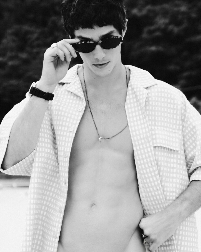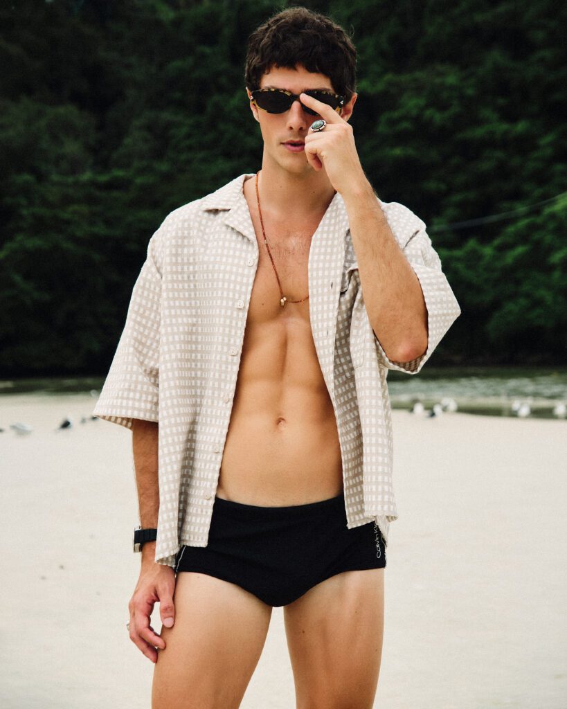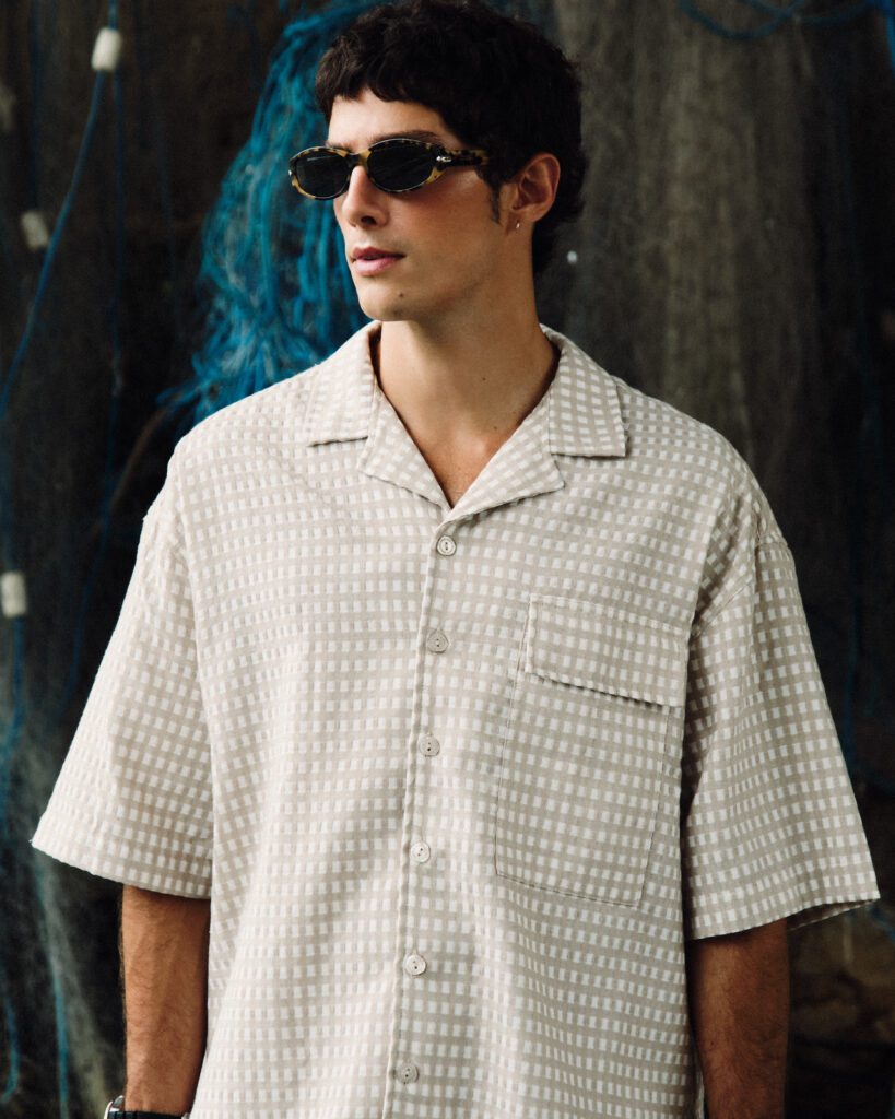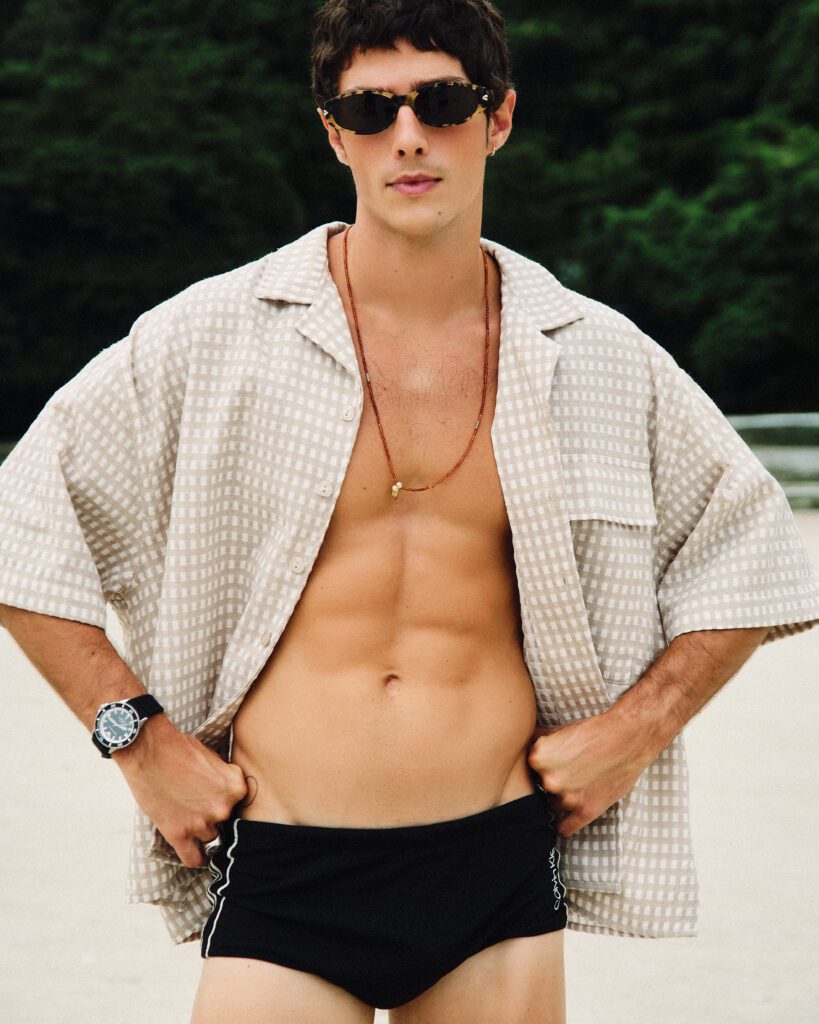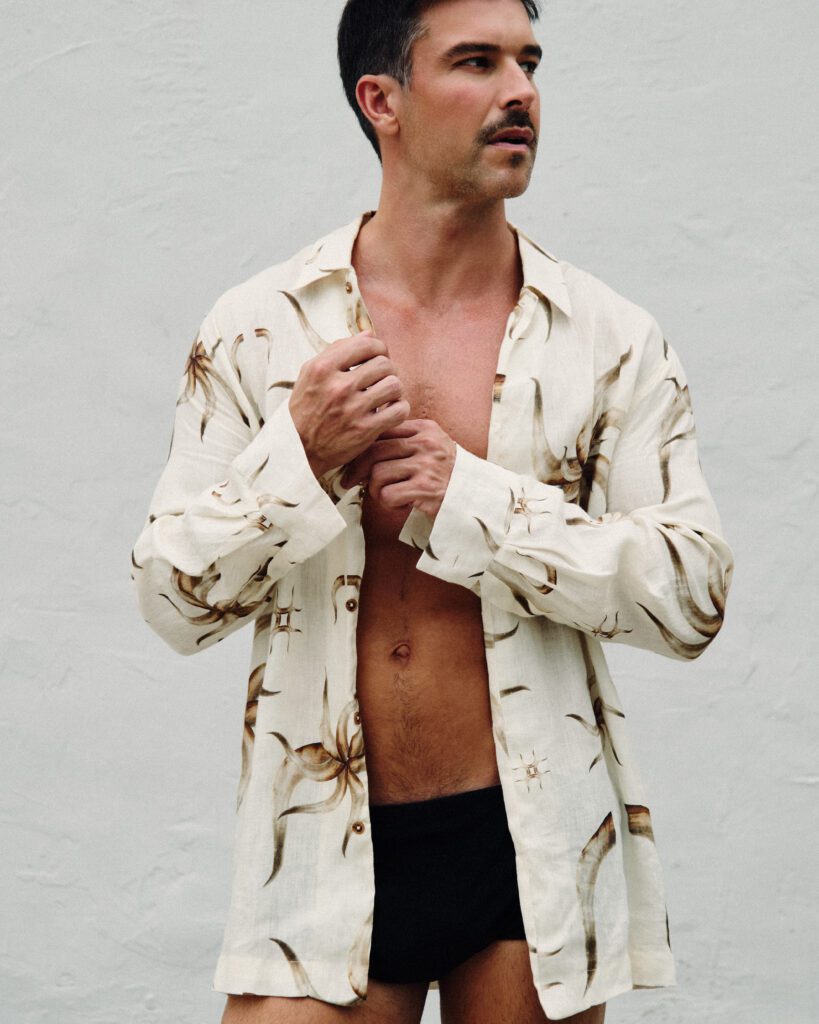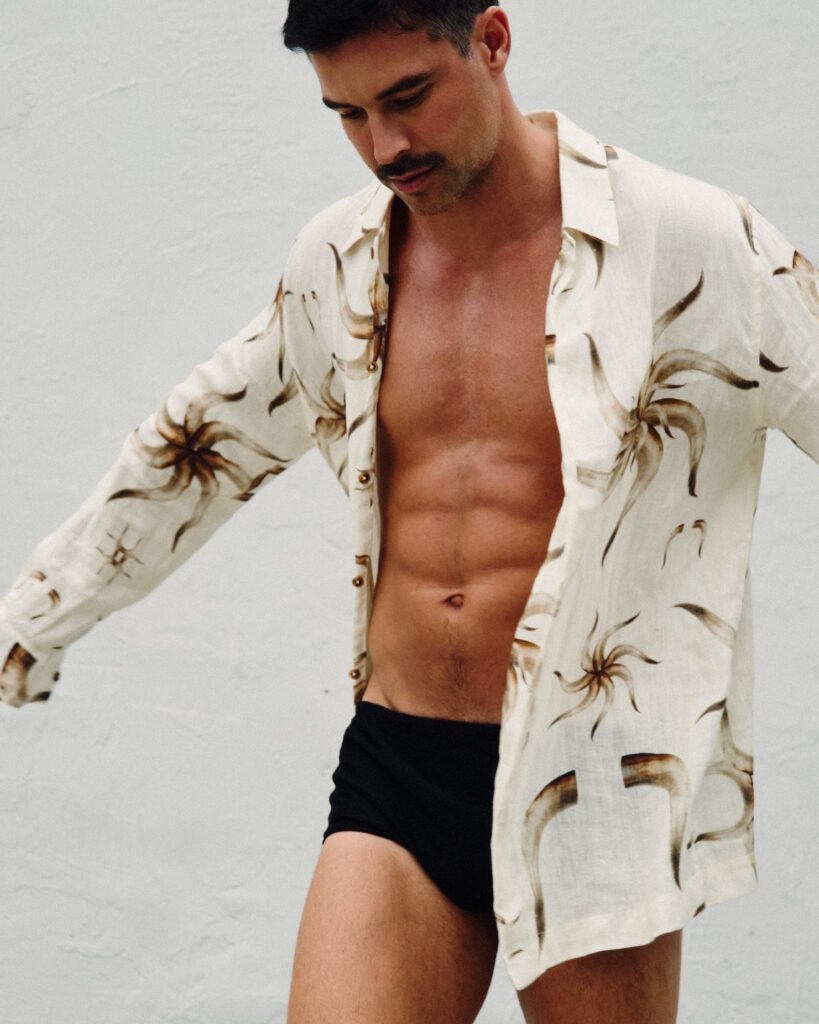 Os looks escolhidos reforçam essa identidade. Em uma das imagens, Bernardo aparece com jaqueta estampada e calça clara de alfaiataria, acompanhadas por uma das bolsas desejadas da marca. Na capa, tons terrosos dominam a produção. Já no último look, uma camisa leve e estampada, usada de maneira despojada, acrescenta um ar sensual e leve ao editorial. O resultado é uma narrativa que traduz o estilo da MISCI: contemporâneo, brasileiro e sofisticado na medida certa.