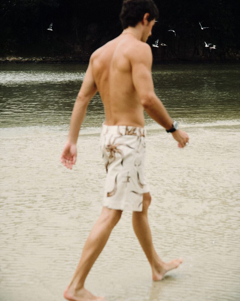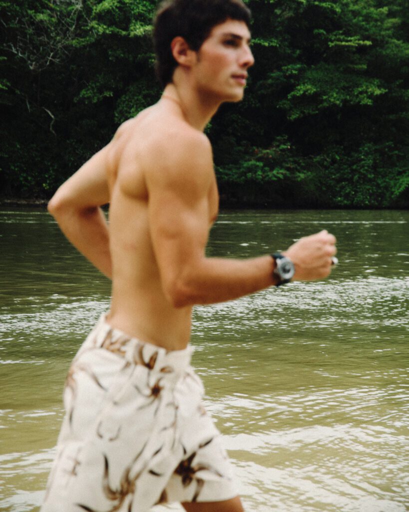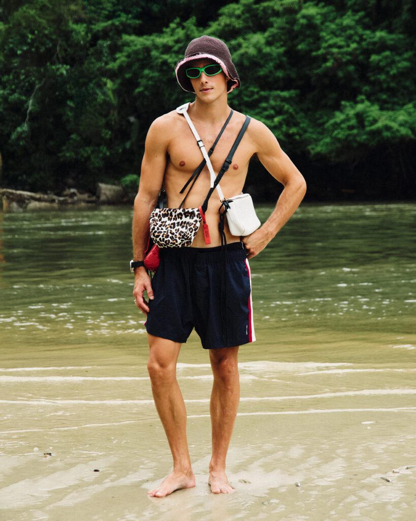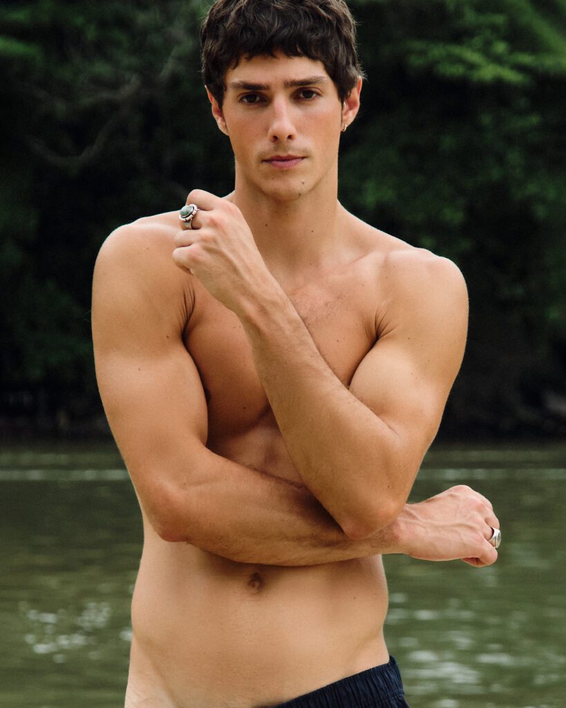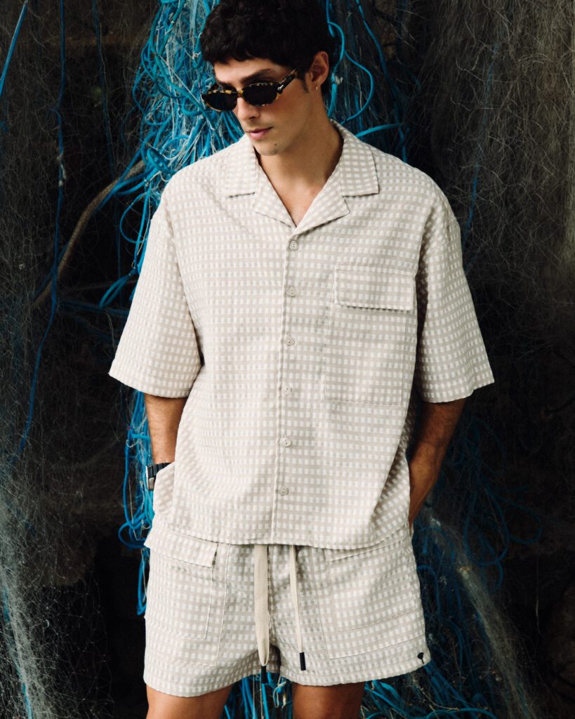 Os looks escolhidos reforçam essa identidade. Em uma das imagens, Bernardo aparece com jaqueta estampada e calça clara de alfaiataria, acompanhadas por uma das bolsas desejadas da marca. Na capa, tons terrosos dominam a produção. Já no último look, uma camisa leve e estampada, usada de maneira despojada, acrescenta um ar sensual e leve ao editorial. O resultado é uma narrativa que traduz o estilo da MISCI: contemporâneo, brasileiro e sofisticado na medida certa.