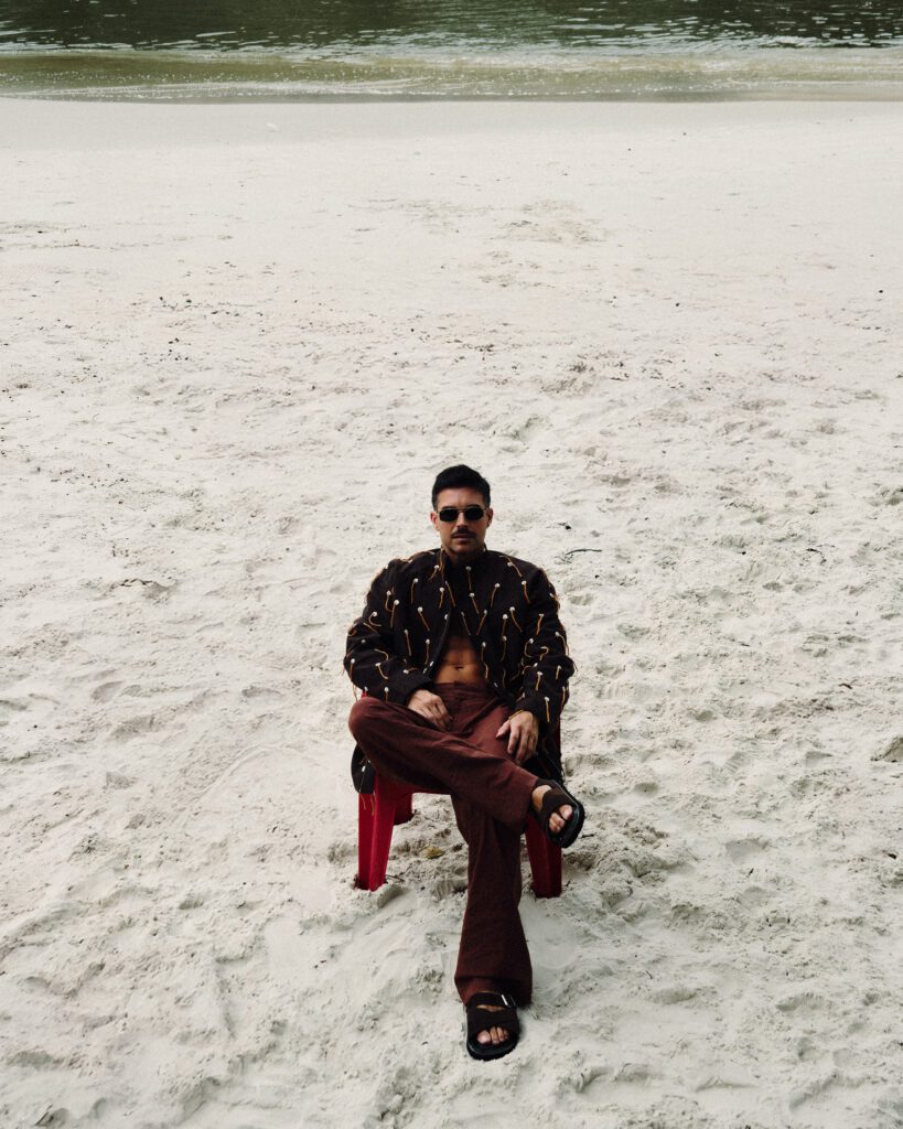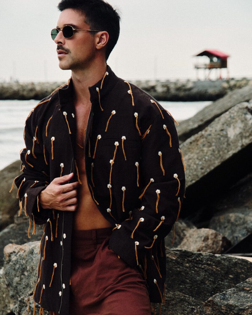 Neste editorial, Bernardo Velasco incorpora a essência da MISCI, marca de Airon Martin que vem redefinindo a moda brasileira com uma mistura de alfaiataria, referências culturais e design contemporâneo. Desde sua criação, a grife se destaca pelo uso de estampas marcantes, cortes amplos e uma leitura sofisticada da brasilidade.